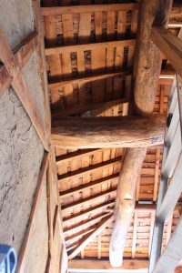 土壁で作られた古い家には、今ではなかなか手に入らないような立派な梁(はり)が使われていることも多く、