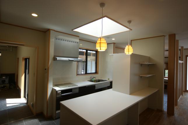 キッチンは、蕎麦を打ったりパンをこねたりできるような大きな調理台と、将来的に椅子に腰掛けて調理ができるように足元に空間のあるシステムキッチンを選びました。ガスと迷ったうえで、高齢になった時を考えてIHにしました。